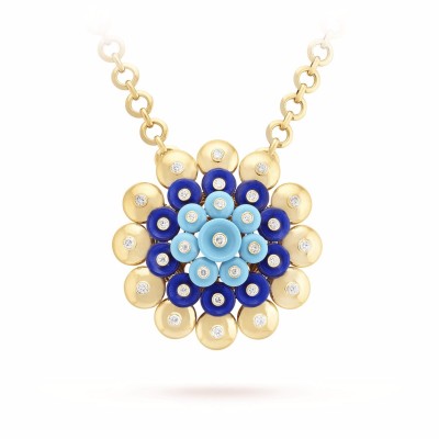 描述 Bouton d’or®系列的灵感源自Paillette图案的弧形线条,此珠宝设计源自Van Cleef * Arpels梵克雅宝于1930年代末的创作。如今,世家重新演绎此设计,以不同的组合和色彩创作风格柔美的项链、戒指、手链及耳环。 Bouton d’or吊坠,黄K金,青金石,绿松石,圆形钻石;DEF、IF至VV*w*S级钻石。 作品编号 : VC*w*ARP1BF00   详情 宝石 绿松石 : 8 宝石 钻石 : 30 宝石, 0.94 克拉