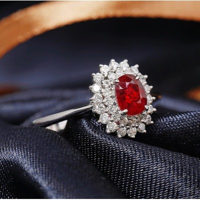 Daisy Fellowes/黛西法罗 18K金钻石红宝石戒指 蛋面彩宝围钻女戒