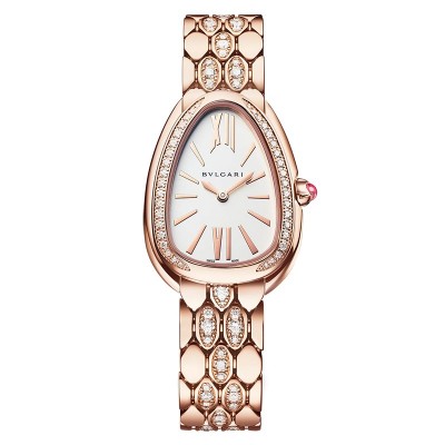 BVLGARI/宝格丽 18K金玫瑰金表壳和表带 镶有钻石和白色表盘 SERPENTI SEDUTTORI石英手表 33毫米103275